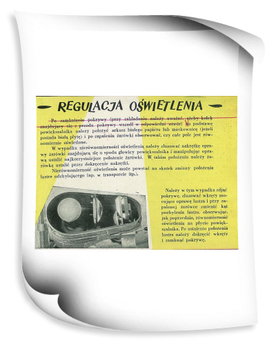wskaźnik ostrości. Standardowy obiektyw "Prodar" 50/4,5 lub Mikar
