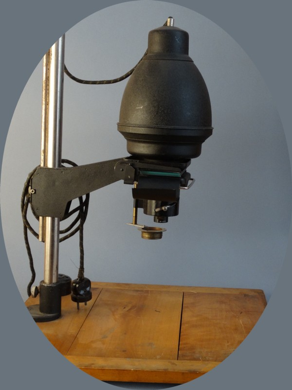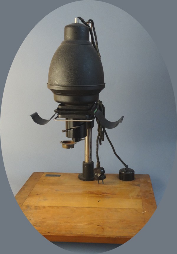 Zakłady Mechaniczno-Optyczne OPTA. Całe tabliczki ze zmienioną nazwą Katowic na Stalinogród świadczą o tym, że powiększalnik był wyprodukowany około 07.03.1953 roku. Przycięte tabliczki znamionują produkcje po 10.12.1956 roku, kiedy to przywrócono nazwę Katowice. |