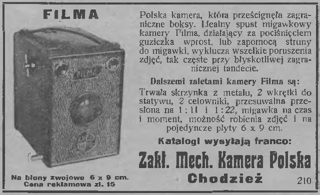 całkowicie polska konstrukcja. Aparat kosztował 15 zł.
