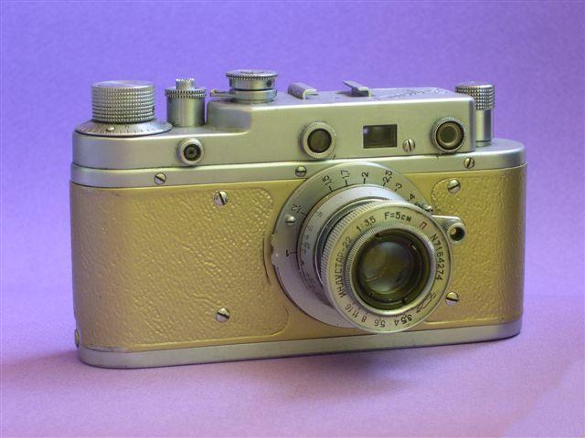 1950. W wersji zlotej. Obiektyw industar 22.f50mm/3.5.Radziecki aparat budowany na wzor Laica